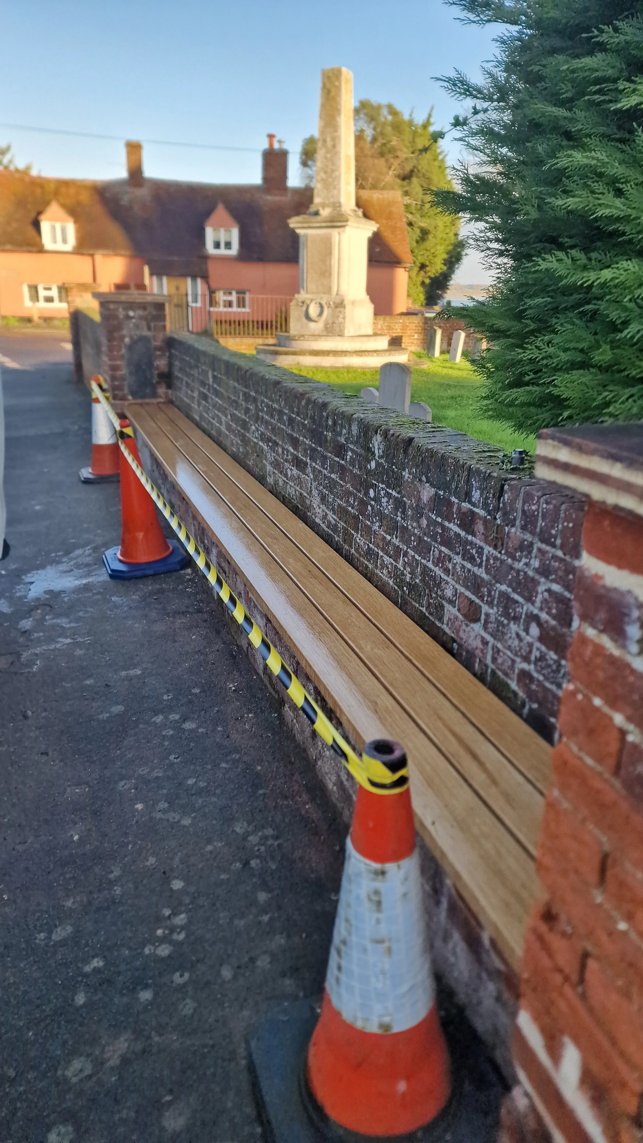 November 2025 The wall pillars and seating in the street have now been repaired. The Friends gave a £3000 grant towards the costs involved.
